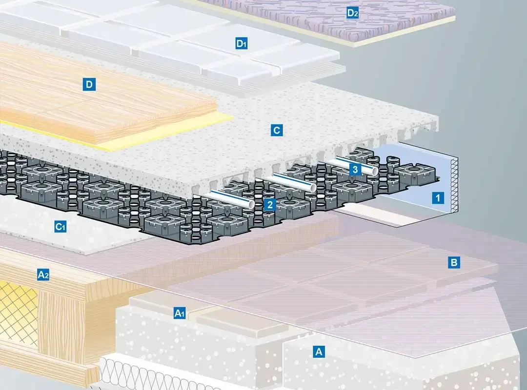 Heatile Tech ist ein vorgefertigtes System für Fussbodenheizung und Passif Kühlung mit innovativen und leistungsstarken Eigenschaften.